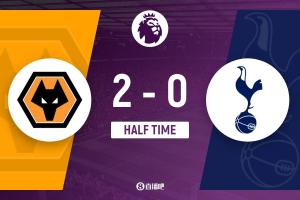 第38分钟,狼队左路吊进禁区,维卡里奥扑救将球打在斯宾塞身上!是不是躲闪不急,皮球被撞进自家大门!热刺0-2落后狼队↓